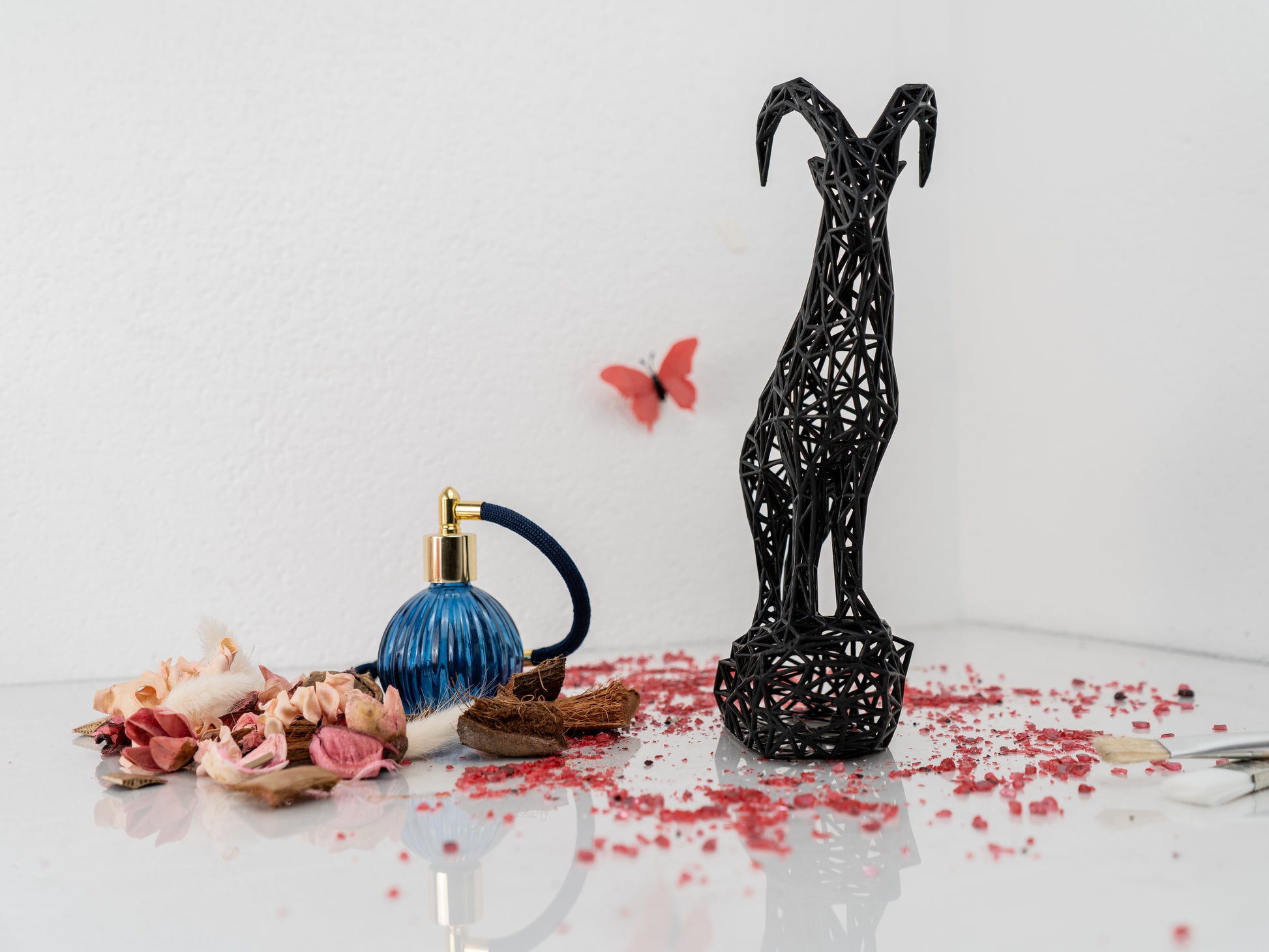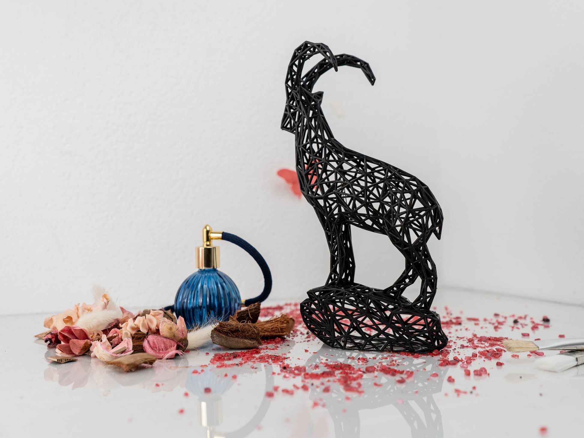 Hey there, I’m not just a sculpture—I’m a piece of the Alps, hand-designed by yours truly and lovingly brought to life right here in Austria! 🇦🇹 Inspired by the tenacious Capricorn spirit, I embody the majestic alpine ibex, perched confidently on a rock and ready to conquer your space with a geometric twist.