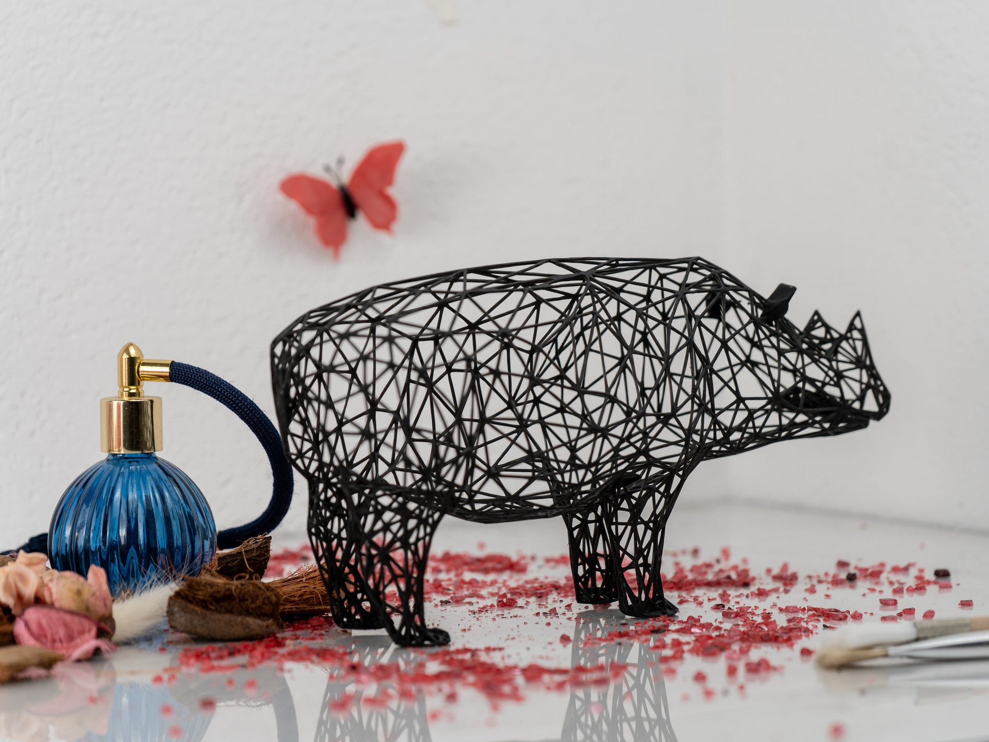 Born in Austria, I’m crafted with precision using high-tech resin printers that make my finish smoother than a rhino’s charge through the savanna. My intricate 3D grid design is hand-finished to perfection, capturing the raw strength and grace of a rhino in minimalist form. Made from durable acrylic resin, I can handle a fall from your desk (not that I’d recommend testing my toughness) and am light enough for outdoor display—just make sure I’m secured in case of strong winds! 🖤🤍